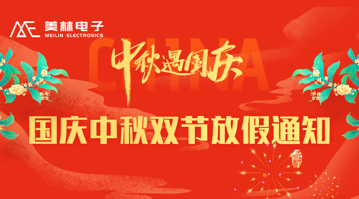 尊敬的各位客戶(hù)、各合作伙伴: 團(tuán)圓慶華誕,雙節(jié)共歡騰。國(guó)慶中秋雙節(jié)將至,根據(jù)國(guó)家有關(guān)規(guī)定結(jié)合公司實(shí)際,放假安排如下:10月1日至10月8日放假休息,共8天,10月9日(星期四)正常上班。 感謝您一如既往的信任和支持。美林電子祝您財(cái)源廣進(jìn),團(tuán)圓喜樂(lè),闔家幸福,萬(wàn)事如意!